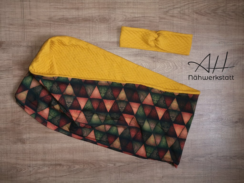 .. Tuch zum Wenden. Stoffe nur begrenzt verfügbar, bitte bei mir nachfragen. Größe 1 ist für Kinder bis ca. 5 Jahre.