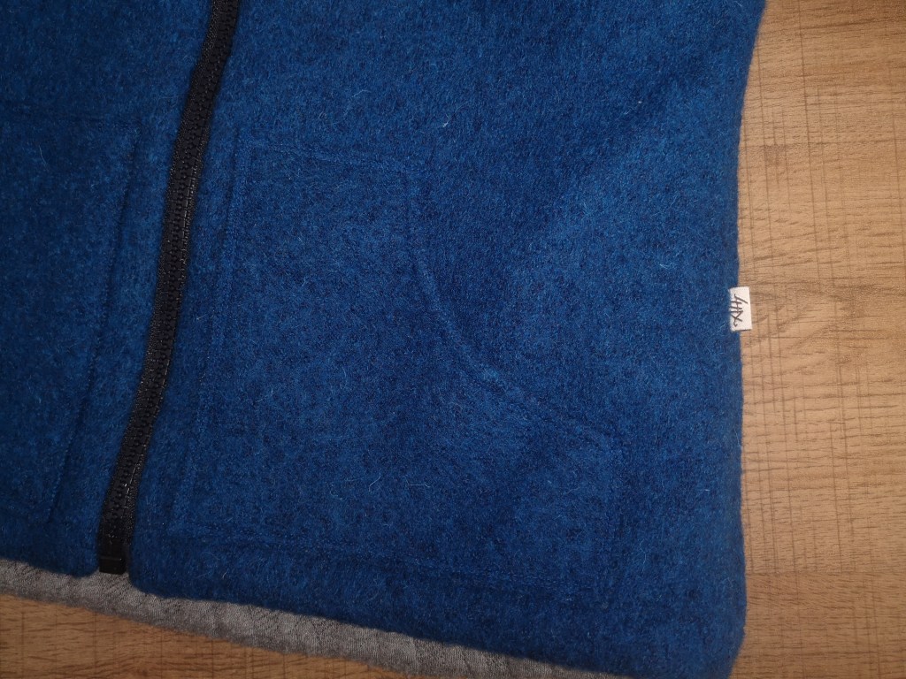 Die Jacke darf nicht in der Waschmaschine gereinigt werden. Der Stoff ist bis zu einem gewissen Punkt selbstreinigend und wärmeregulierend. Bei Verschmutzung im trockenen Zustand ausbürsten oder punktuell mit der Hand auswaschen.