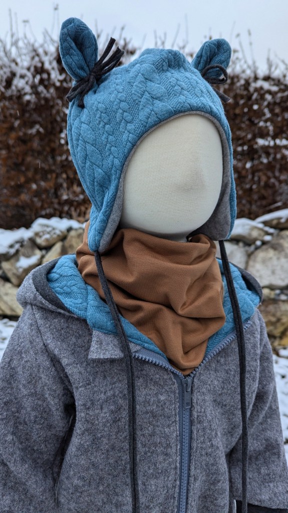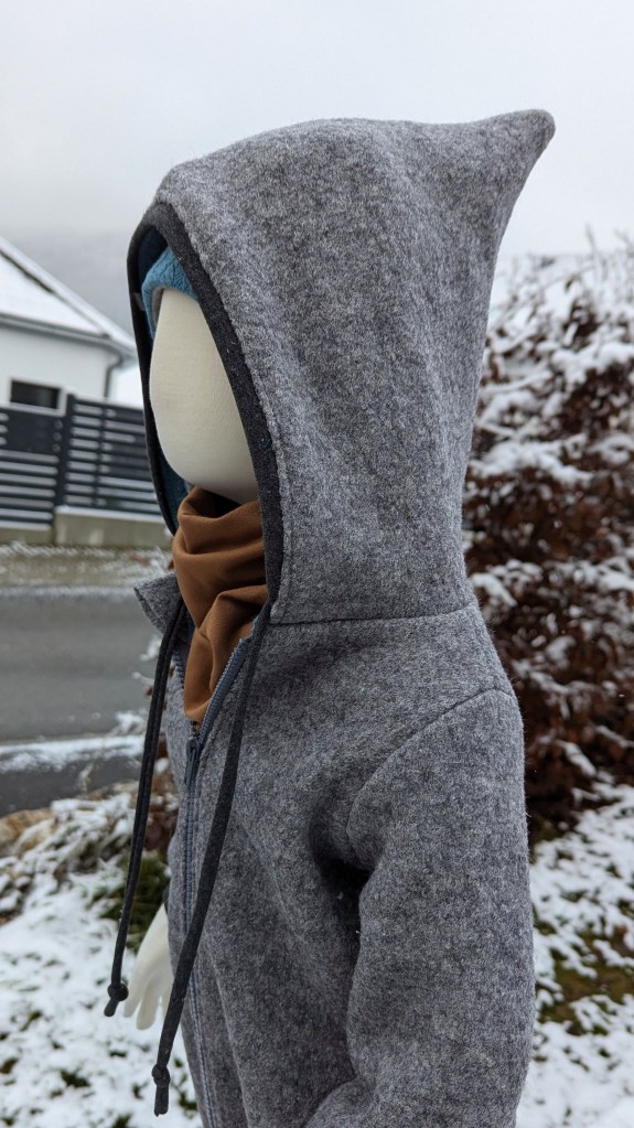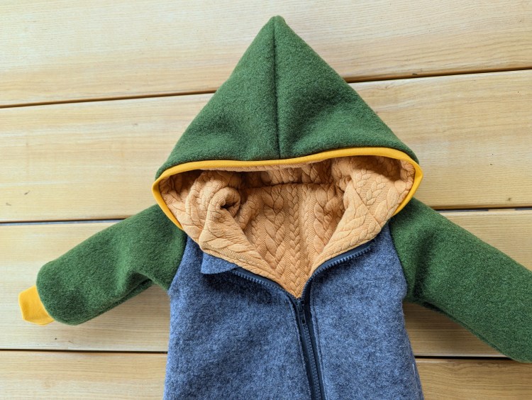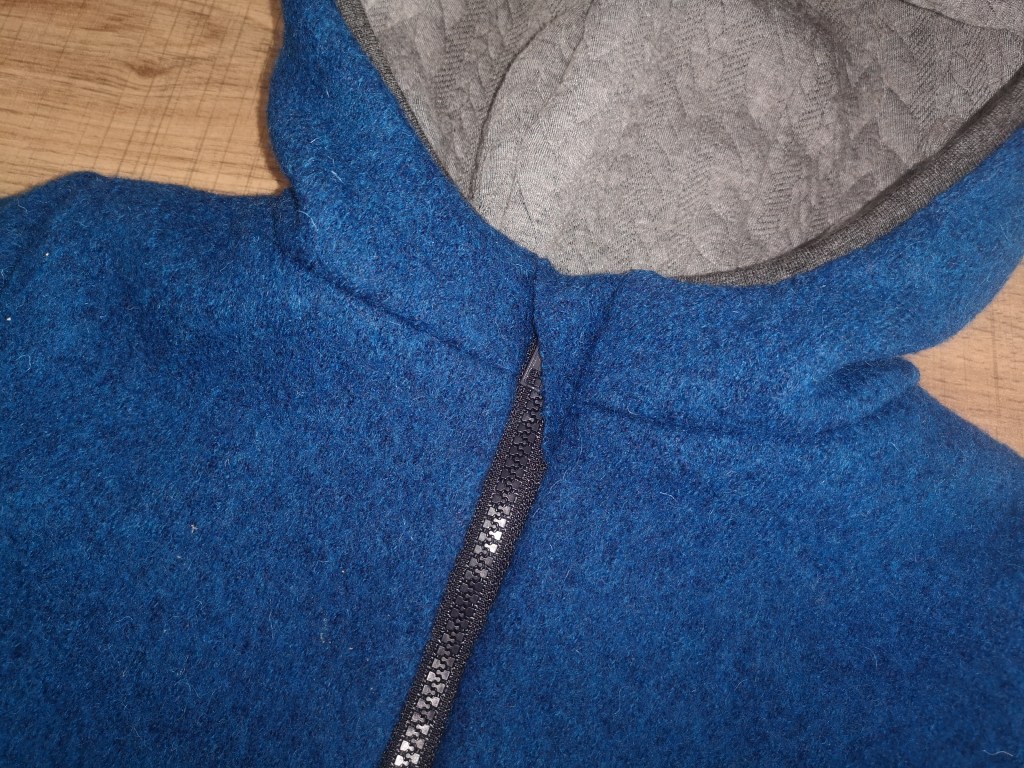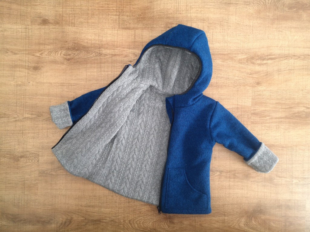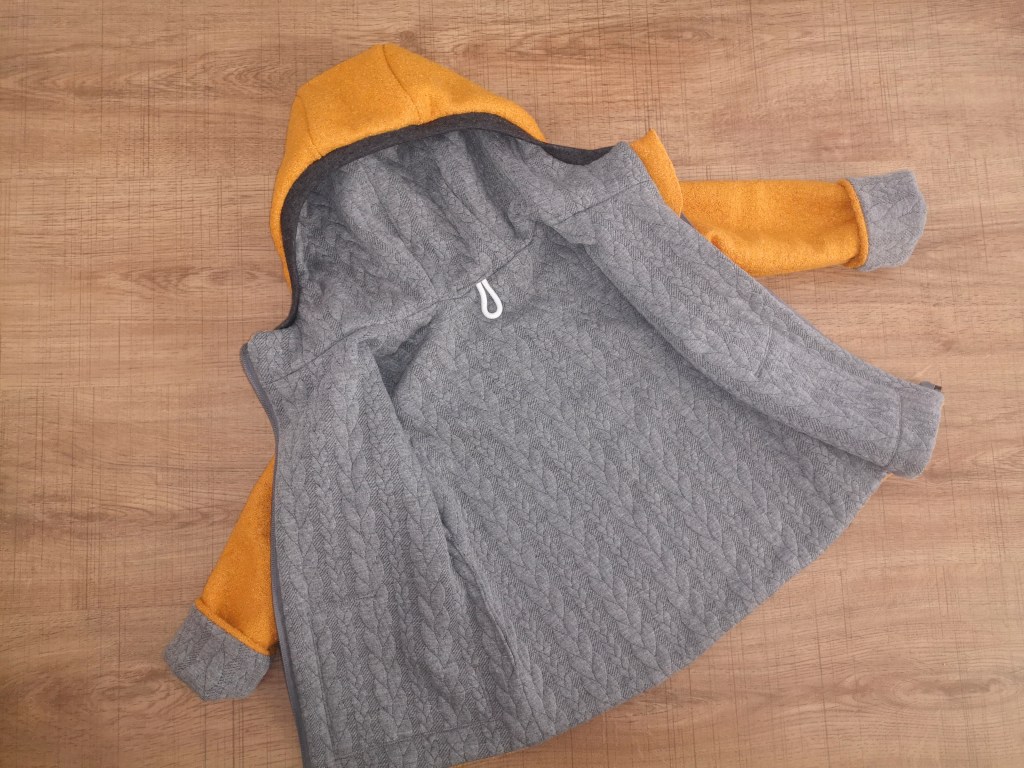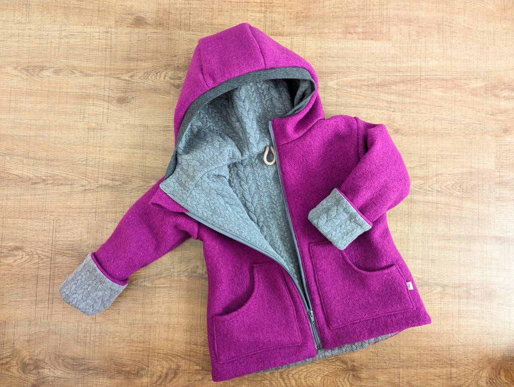 Die Jacke ist innen komplett mit einem Zopfstrickstoff gefüttert.