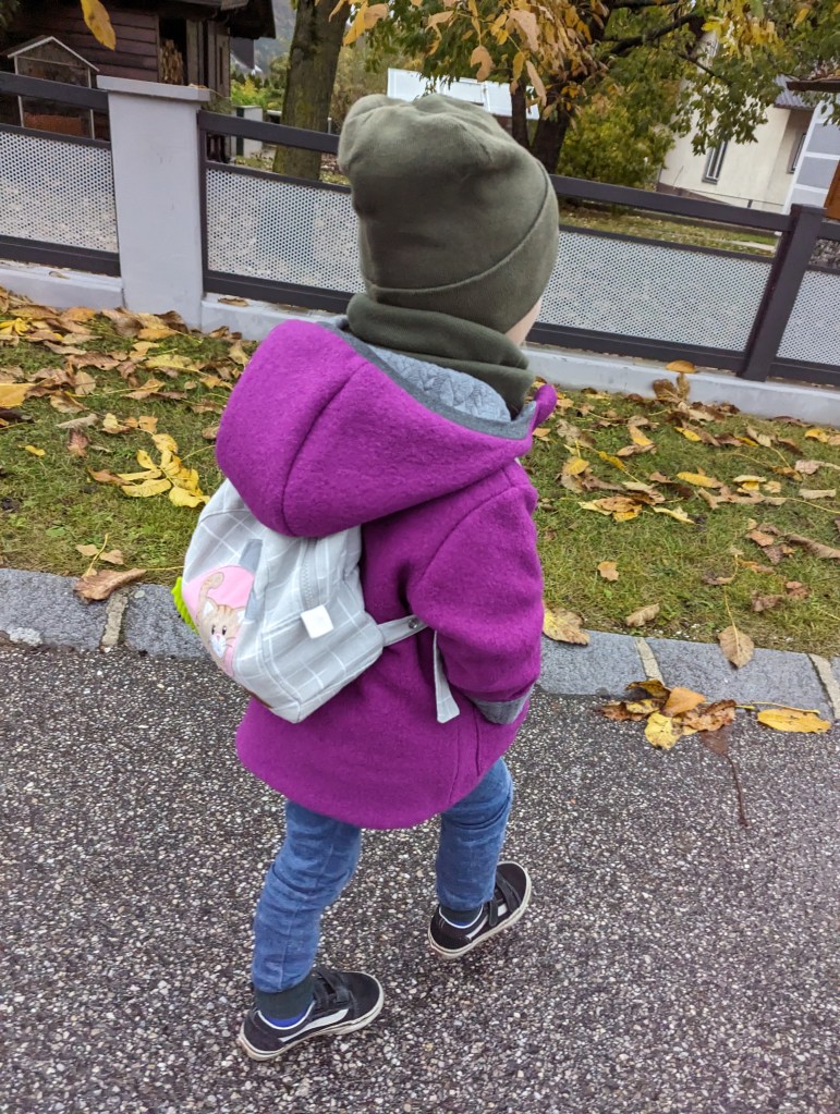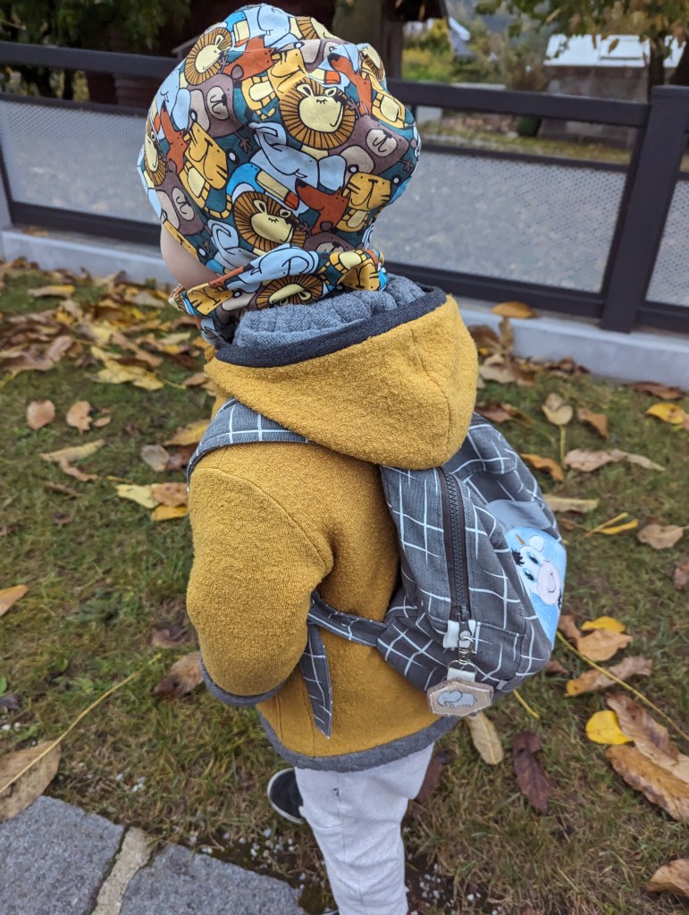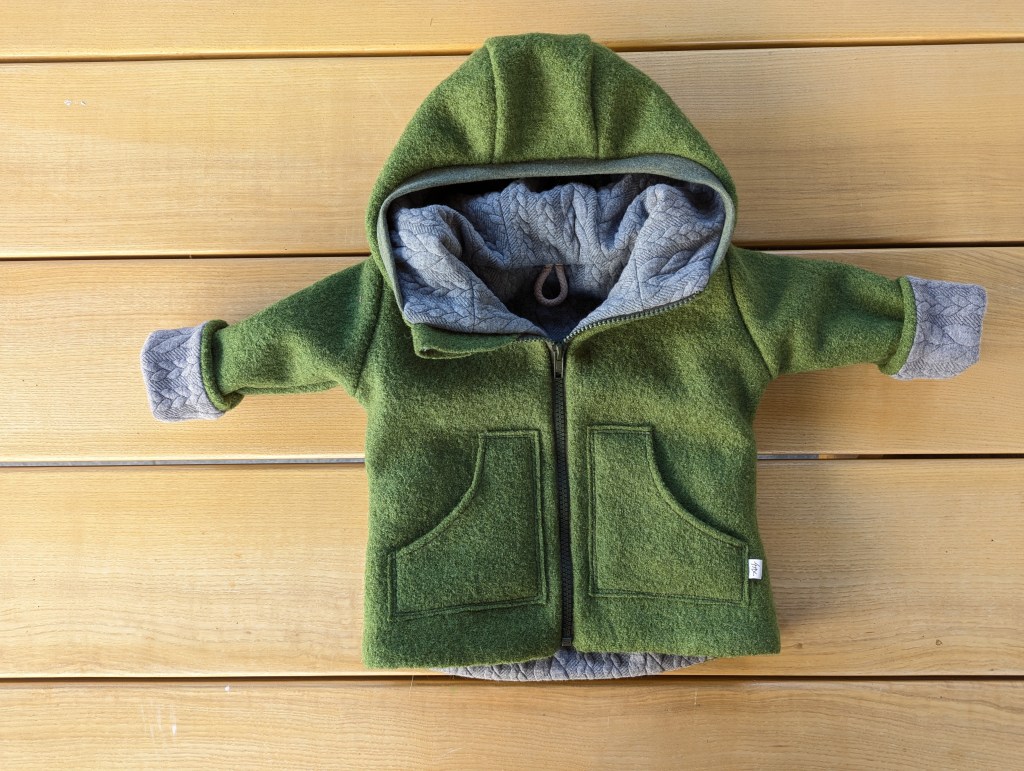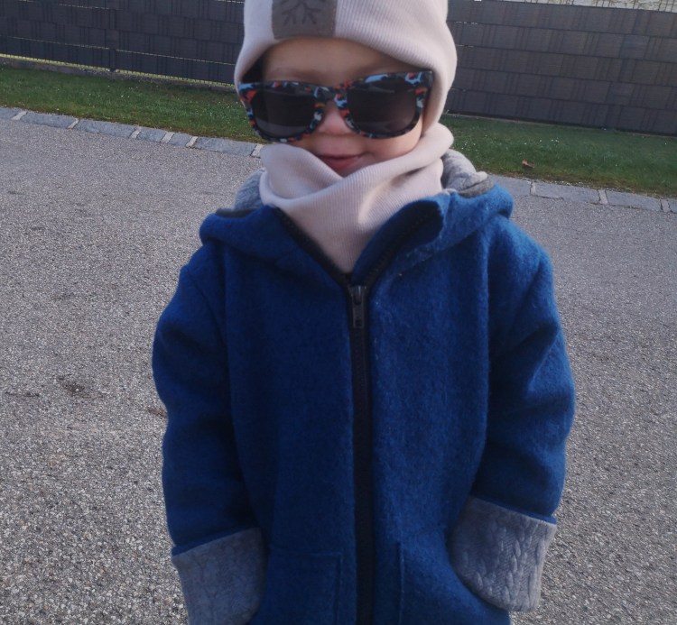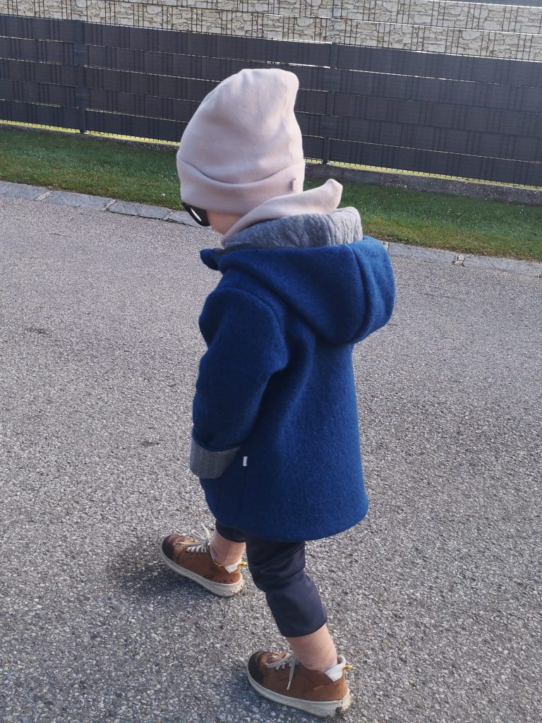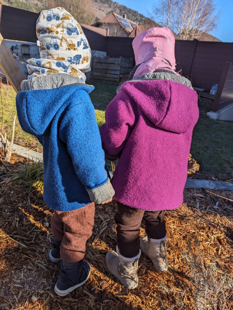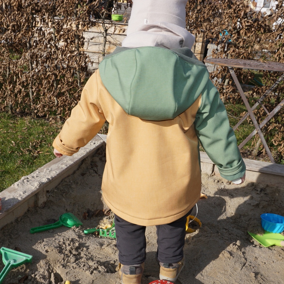 Zwei Nummern größer bestellen, als die derzeitige Größe – die Ärmel werden einfach umgekrempelt und die Jacke passt somit länger.